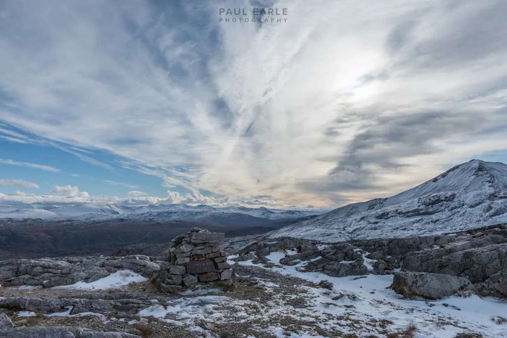 Having done this same hike last winter accompanied by snow and ice (see the Winter Wonderland post), it was surprising in autumn to be confronted with the first taste of wintry weather, with a careful hike needed up the icy path to the plateau providing the usual great views across to the Ben Eighe range.
