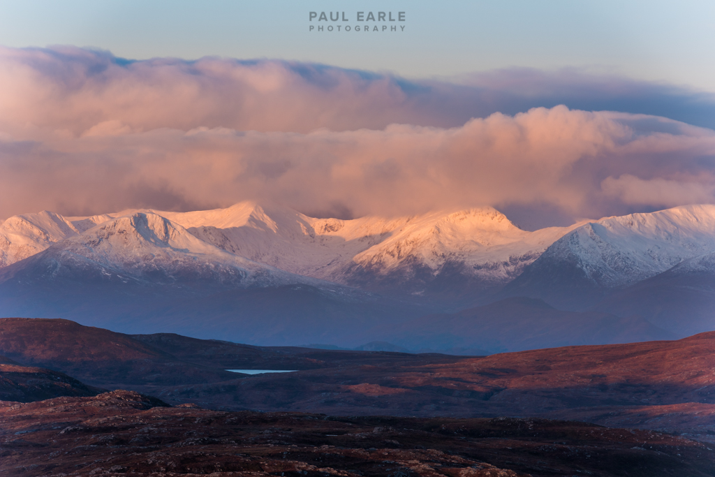 …but instead I was treated with some superb views of distant mountains being lit by the very low sun, causing them to turn from pink to eventual white as the sun got higher: